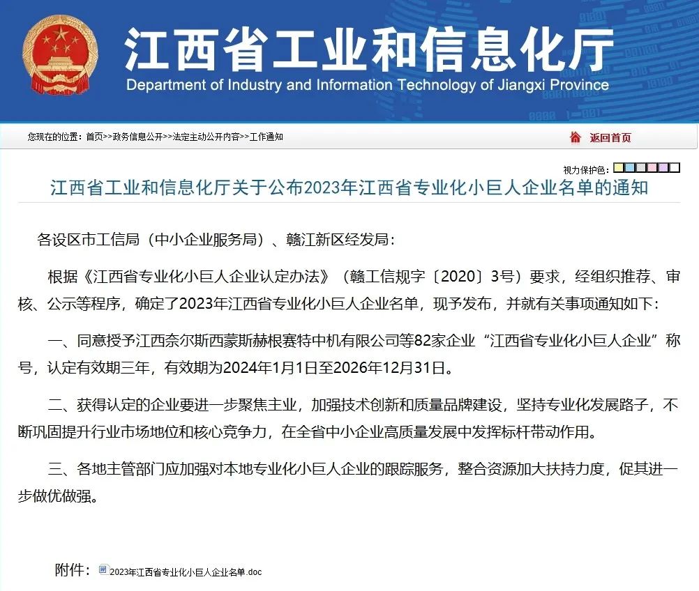 【概要描述】近日,江西省工業(yè)和信息化廳公布了2023年江西省專業(yè)化小巨人企業(yè)名單,江西英大生物技術(shù)有限公司“榜上有名”。